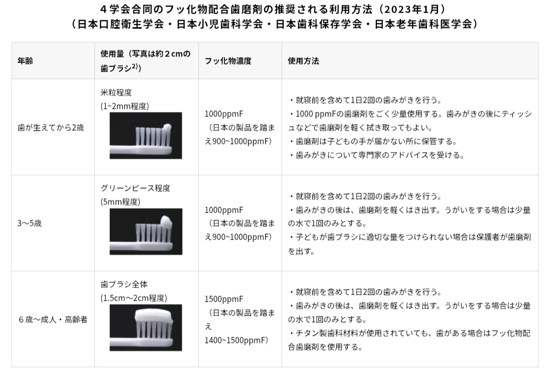 そして、国際歯科連盟や世界保健機関が推奨している歯磨き粉中のフッ素の量があります。