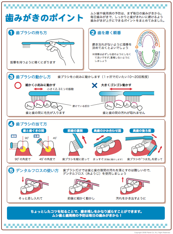 ここでお伝えしているのはあくまで基本的な事です。患者さん一人一人のお口の中、生活習慣に応じて歯ブラシ指導いたしますので、ぜひメインテナンスにお越しください。