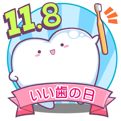 「いつまでも美味しく、そして、楽しく食事をとるために、口の中の健康を保っていただきたい」という願いを込めて、厚生労働省とともに日本歯科医師会が「8020運動」の一環として、11月8日を「いい歯の日」と設定したことが始まりです。
