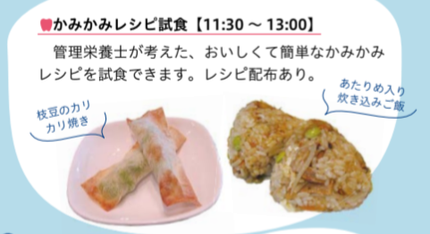 たくさん噛める食事のメニューを管理栄養士さん監修のもと「かみかみレシピ」として紹介され、試食会もありました。